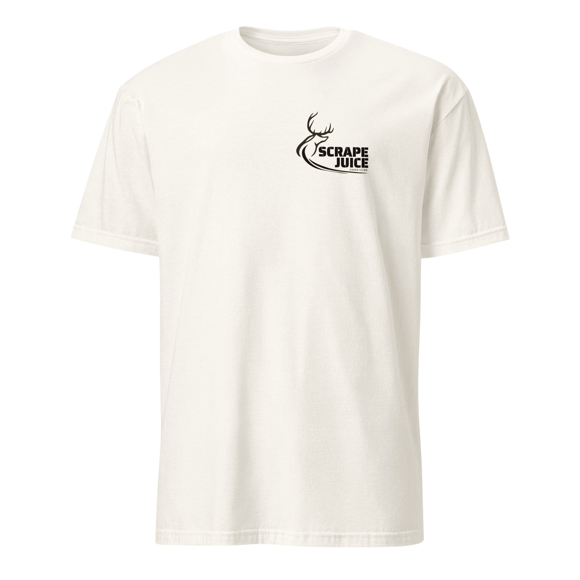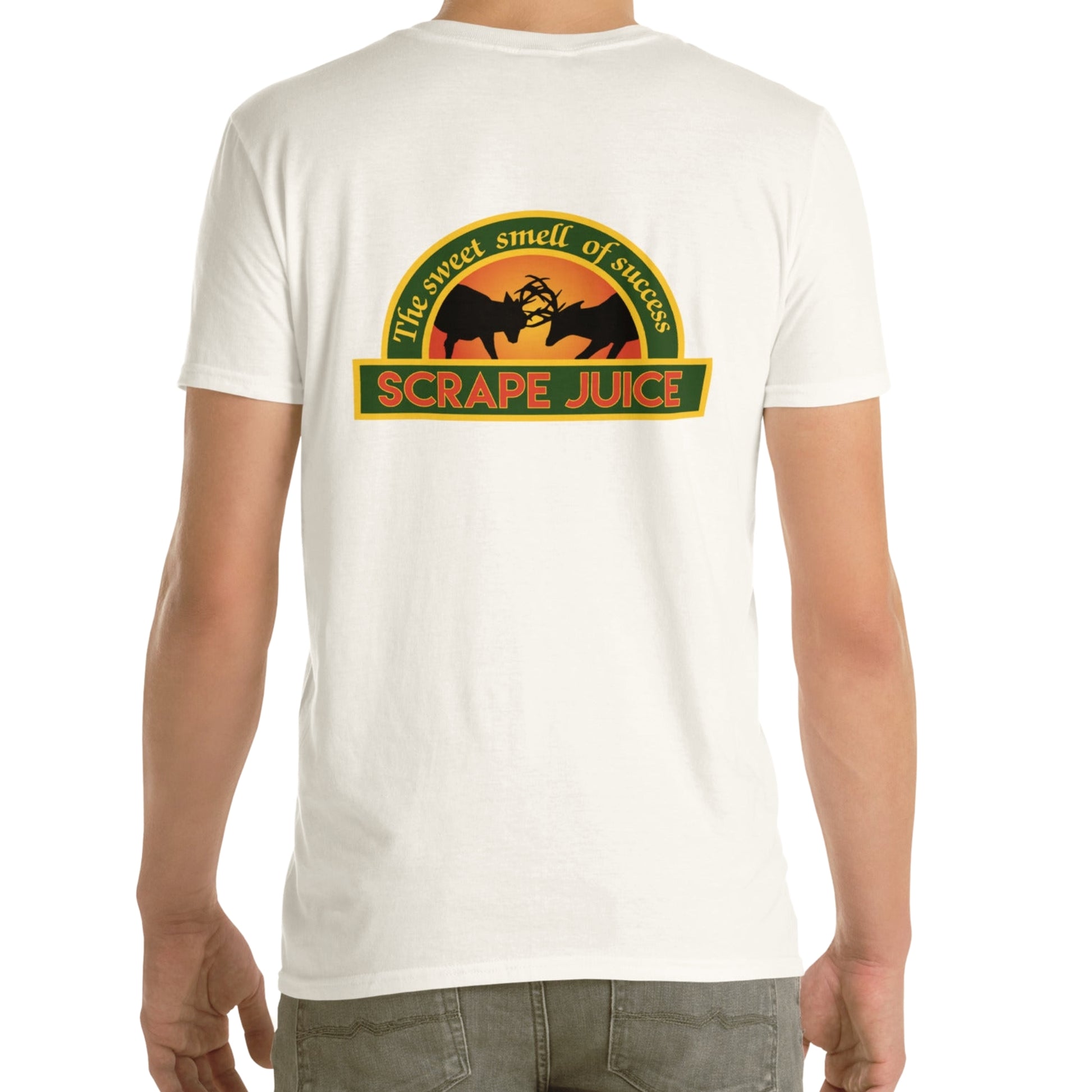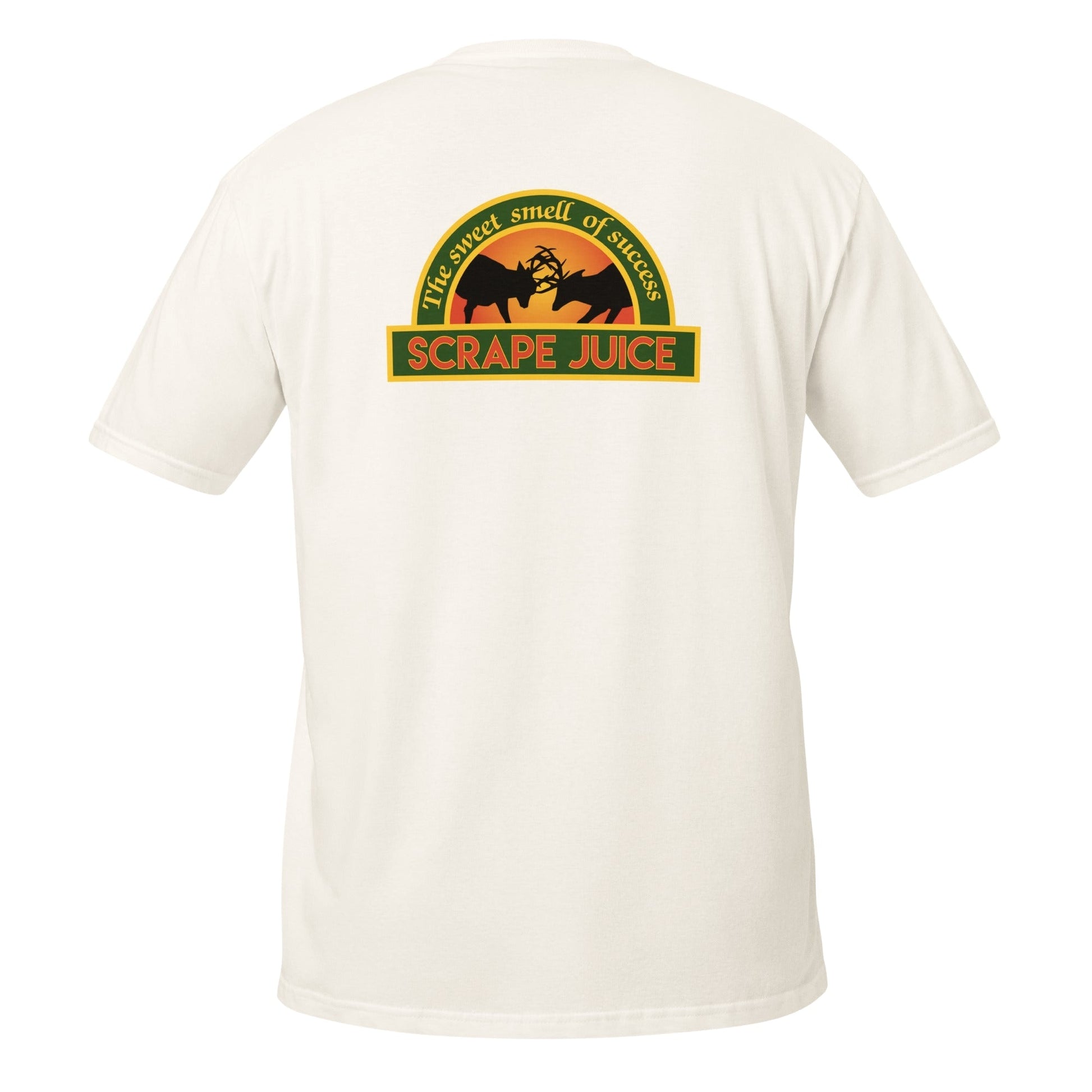 This Scrape Juice T-shirt features our branded logo on the front and a retro colorful design on the back. Made from high-quality materials, this shirt is perfect for showcasing your love for our brand and standing out in style. Show off your unique personality and support our brand with this one-of-a-kind short sleeve T-shirt.